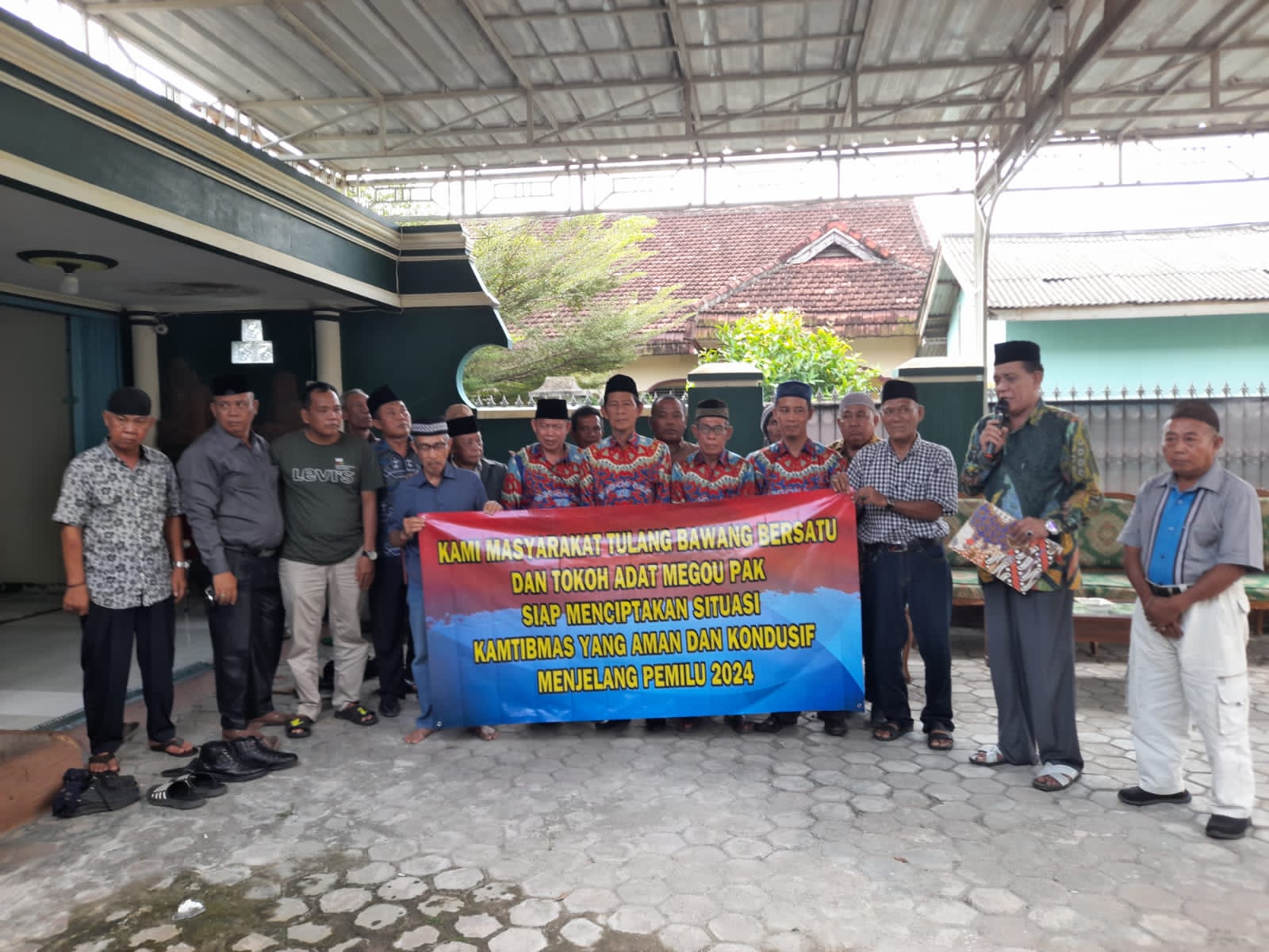 Oleh karena itu, Masyarakat Tulang Bawang Bersatu dan Tokoh Adat Megou Pak Kabupaten Tulang Bawang telah menyatakan sikapnya untuk siap memastikan pemilu 2024 mendatang kondusif dan situasi kamtibmas terjaga.