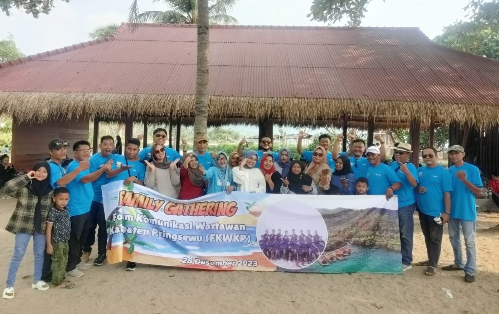 TELISIKMEDIA.COM -Forum Komunikasi Wartawan Kabupaten Pringsewu (FKWKP) mengadakan Family Gathering yang ke 3, dilaksanakan di Pantai Sanggar Beach, Kalianda, Lampung Selatan, pada Kamis (28/12/2023).
