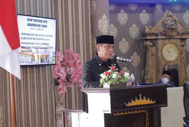 “Demikian LKPj Tahun 2023 yang dapat kami sampaikan, dan Saya mengucapkan rasa terima kasih dan penghargaan yang setinggi-tingginya kepada Pimpinan dan seluruh Anggota DPRD Kabupaten Way Kanan, yang telah menjalin kerjasama yang baik selama ini dalam mendukung program pembangunan yang ada di Kabupaten Way Kanan tercinta ini. Ucapan terima kasih Saya sampaikan juga kepada seluruh anggota Forkopimda, Jajaran Pemerintah Kabupaten Way Kanan, para tokoh, dan seluruh komponen masyarakat yang telah berperan aktif, berpartisipasi serta mendukung berbagai kebijakan dan program pembangunan daerah, sehingga pembangunan di Kabupaten Way Kanan dapat berjalan dengan baik dan aman”, tutur Wabup yang juga berharap upaya pembangunan yang telah dilakukan dapat memberi manfaat bagi masyarakat dan perkembangan Kabupaten Way Kanan.