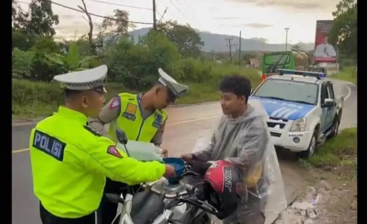 Mendapat bantuan dari petugas Kepolisian, Umar Hadi Kesuma dari Bekasi Provinsi Jawa Barat tujuan ke Kecamatan Bahuga Kabupaten Way Kanan Provinsi Lampung memberikan apreasi kepada Kepolisian telah membantu dalam perjalanan memberikan bensin sepeda motornya saat melintas di jalan lintas tengah sumatera Kampung Suka Negeri Kecamatan Gunung Labuhan Kabupaten Way Kanan.