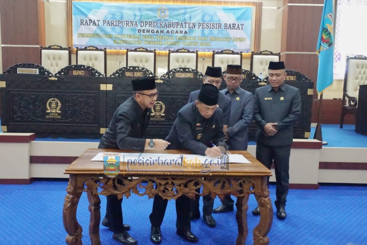 TELISIKMEDIA.COM, Pesisir Barat -Wakil Bupati (Wabup) Pesisir Barat (Pesibar), A. Zulqoini Syarif, S.H., kembali menghadiri rapat paripurna Dewan Perwakilan Rakyat Daerah (DPRD) yang kedua dengan agenda persetujuan Rancangan Peraturan Daerah (Ranperda) usul kepala daerah dan inisiatif DPRD Pesibar Tahun 2024, di ruang rapat paripurna DPRD Pesibar, Jumat (26/4/2024).