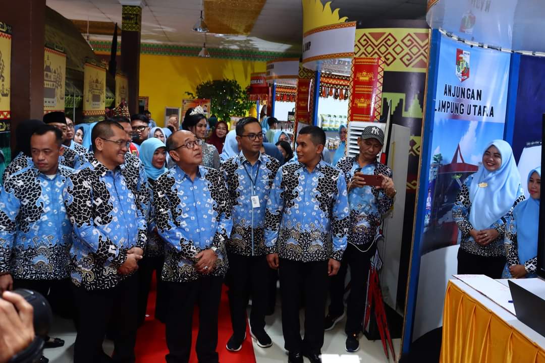Pj. Bupati didampingi Sekretaris Daerah (Sekda) Drs. Lekok, M.M., beserta jajaran pejabat Pemkab Lampung Utara juga menyempatkan diri melihat langsung masing-masing stan yang ada di anjungan Kabupaten Lampung Utara.