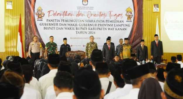 WAY KANAN – Wakil Bupati Drs. H. Ali Rahman, M.T menghadiri Pelantikan Panitia Pemungutan Suara (PPS) Kabupaten Way Kanan Untuk Pemilihan Kepala Daerah Serentak Tahun 2024 di Gedung Pusiban Pemkab Way Kanan, Minggu (26/05/2024).