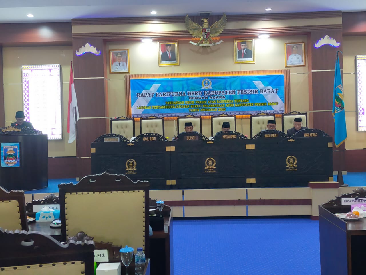 TELISIKMEDIA.COM, Pesisir Barat – Wakil Bupati Pesisir Barat (Pesibar), A. Zulqoini Syarif, S.H., menghadiri rapat paripurna Dewan Perwakilan Rakyat Daerah (DPRD) Pesibar dengan agenda pandangan umum fraksi atas Rancangan Peraturan Daerah (Ranperda) tentang pertanggungjawaban Bupati pelaksanaan Anggaran Pendapatan dan Belanja Daerah (APBD) Tahun Anggaran 2023, di ruang rapat paripurna DPRD Pesibar, Kamis (20/6/2024).