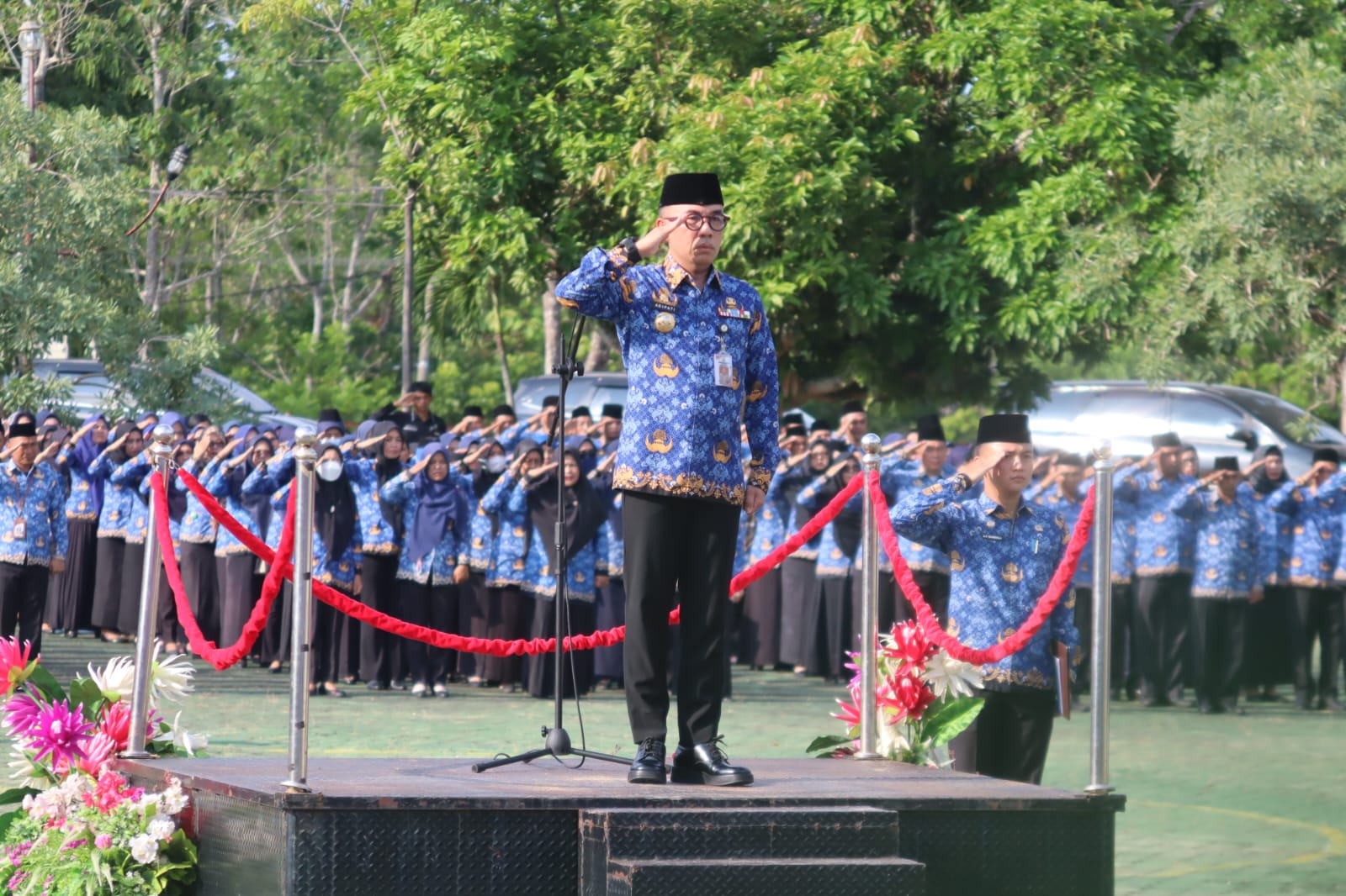 Bertindak sebagai Inspektur Upacara Bupati H. Raden Adipati Surya, S.H.,M.M, Upacara tersebut turut dihadiri dan diikuti oleh para Pejabat Esselon II, III, dan IV, para Pejabat Fungsional, Staf Pemkab Way Kanan, Ketua dan Pengurus Karang Taruna, KNPI serta pelajar SLTP/SLTA dan PMR.