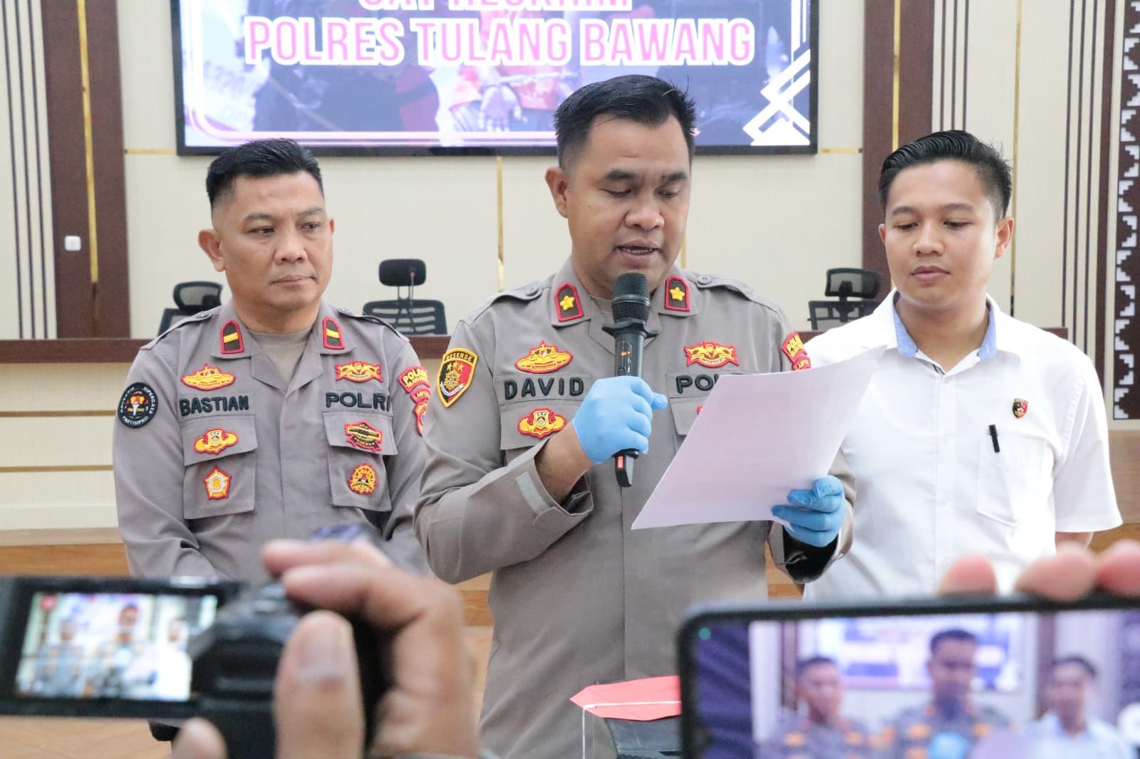 “5 (lima) pelaku spesialis curat kabel milik PLN yang ditangkap oleh Tekab 308 Presisi Polres Tulang Bawang setelah dilakukan pengecekan semua urinenya positif mengandung narkoba, dan diperkuat oleh keterangan para pelaku bahwa sebelum melakukan aksinya mereka menggunakan narkoba jenis sabu terlebih dahulu,” ucap Wakapolres Tulang Bawang, Kompol David J Sianipar, SIK, MH, mewakili Kapolres Tulang Bawang, AKBP Yuliansyah, SIK, MH, Kamis (27/02/2025).