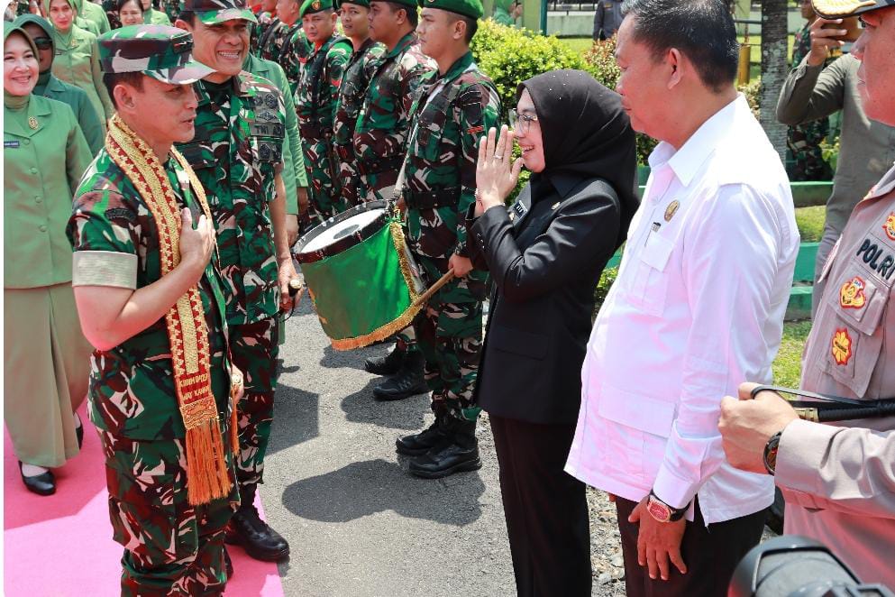 Way Kanan – Pelaksana Tugas (Plt) Bupati Way Kanan, Ayu Asalasiyah, S.Ked, menyambut kedatangan Panglima Komando Daerah Militer (Pangdam) II/Sriwijaya, Mayjen TNI Ujang Darwis, M.D.A., dalam rangka kunjungan kerja ke Markas Komando Distrik Militer (Makodim) 0427/Way Kanan pada Sabtu, 12 April 2025.