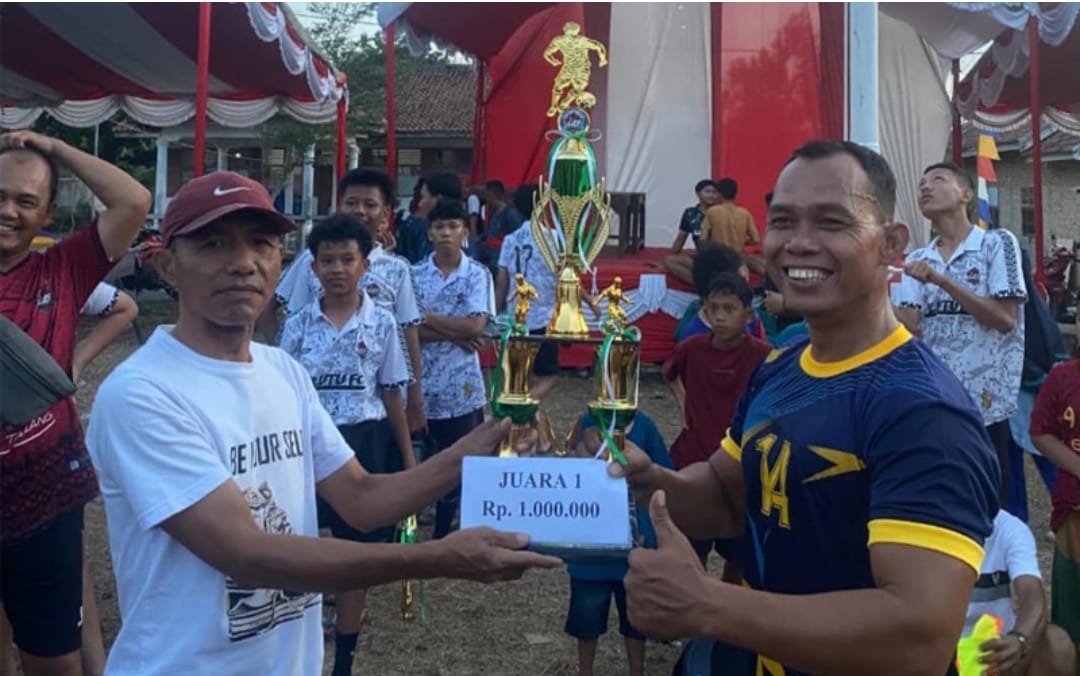 BLAMBANGAN UMPU – Lurah Kecamatan Blambangan Umpu, Kabupaten Way Kanan, Maliki, S.E., menyerahkan hadiah kepada para juara dan menutup Turnamen Sepak Bola Antar Lingkungan (RW) Sekelurahan Blambangan Umpu, Kamis (14/8/2025).