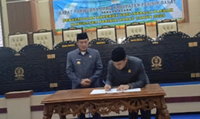 TELISIKMEDIA.COM – Empat Organisasi Perangkat Daerah (OPD) di Kabupaten Pesisir Barat resmi digabung setelah Dewan Perwakilan Rakyat Daerah (DPRD) mengesahkan tiga Rancangan Peraturan Daerah (Ranperda) usul Kepala Daerah Tahun 2025 menjadi Peraturan Daerah (Perda), dalam rapat paripurna yang digelar, Jumat (21/11/2025).