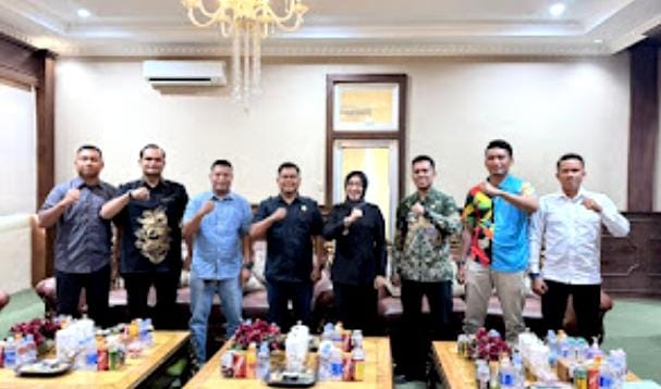 Way Kanan – Jajaran pengurus Komite Olahraga Nasional Indonesia (KONI) Kabupaten Way Kanan menggelar audiensi bersama Bupati Way Kanan, Ayu Asalasiyah, S.Ked., di Ruang Kerja Bupati, Kompleks Perkantoran Pemkab setempat, Kamis (5/2/2026). Pertemuan strategis tersebut dihadiri oleh Kadispora Taufik Hidayatno, Ketua Umum KONI Way Kanan Indra Septa Purnama, Sekretaris Marison Silaen, Ketua Harian M. Usamah, serta Ketua Panitia Pelaksana Gunawansyah.