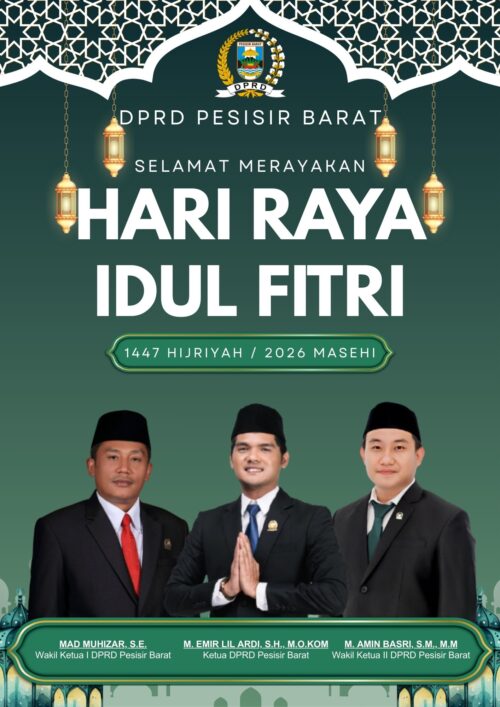 ADVERTISINGDPRD Pesisir Barat Mengucapkan Selamat Merayakan Hari Raya Idul Fitri 1447 HijriahEditor0 min read20 March 202621 April 2026788×DPRD Pesisir Barat Mengucapkan Selamat Merayakan Hari Raya Idul Fitri 1447 HijriahShare this article BERITA TERKAITIklan Ucapan HUT RI ke-80 Tahun 2025IKLAN UCAPAN HUT RI Ke-80 DAN HARI JADI KABUPATEN BEKASI Ke-75, DINAS PERINDUSTRIAN KABUPATEN BEKASIIKLAN UCAPAN HUT RI Ke-80 dan HARI JADI KABUPATEN BEKASI Ke-75 DINAS PENDIDIKAN KAB BEKASIIKLAN UCAPAN HUT RI Ke-80 DAN HARI JADI KABUPATEN BEKASI Ke-75